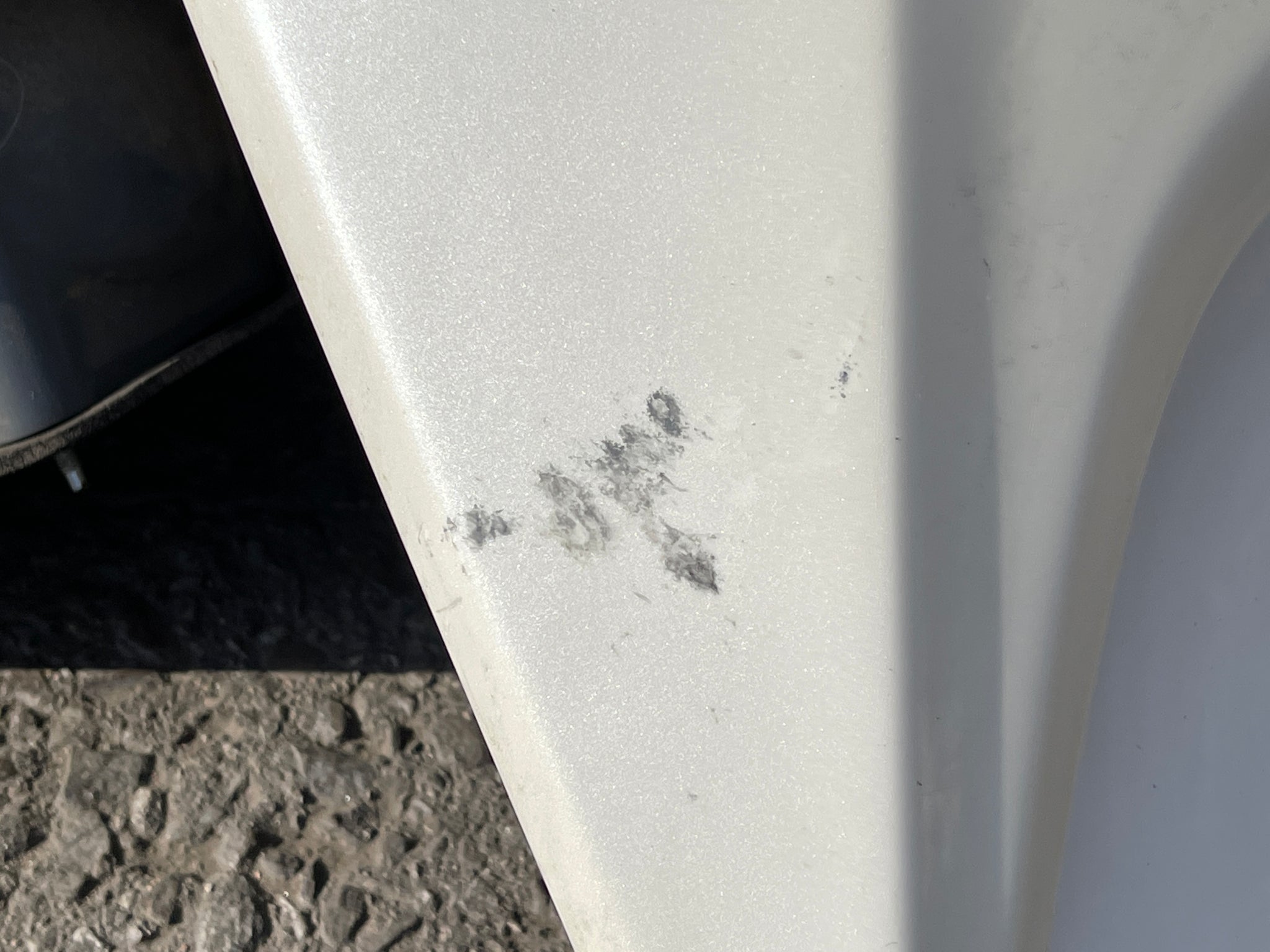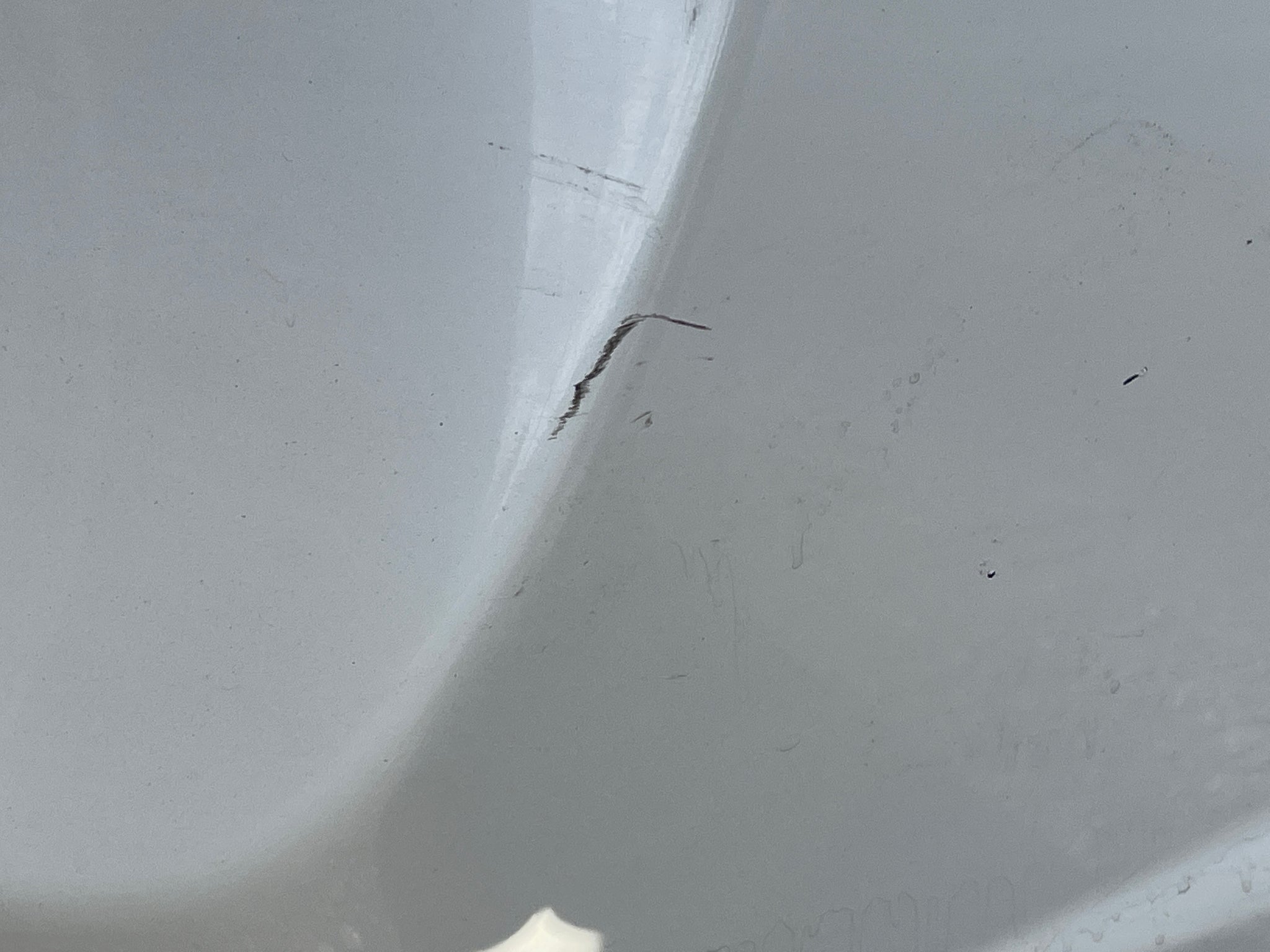 It has scratches and paint imperfections.