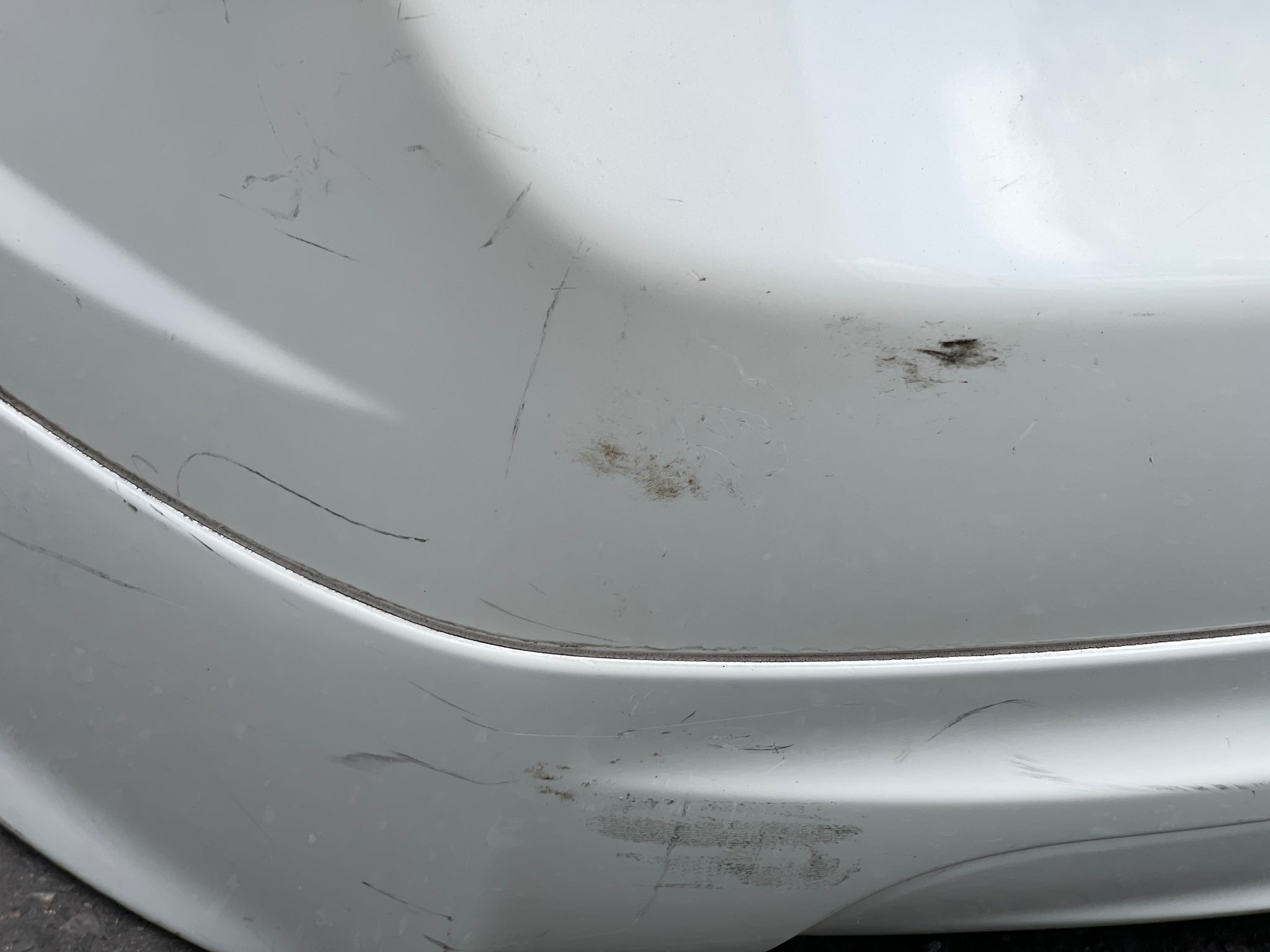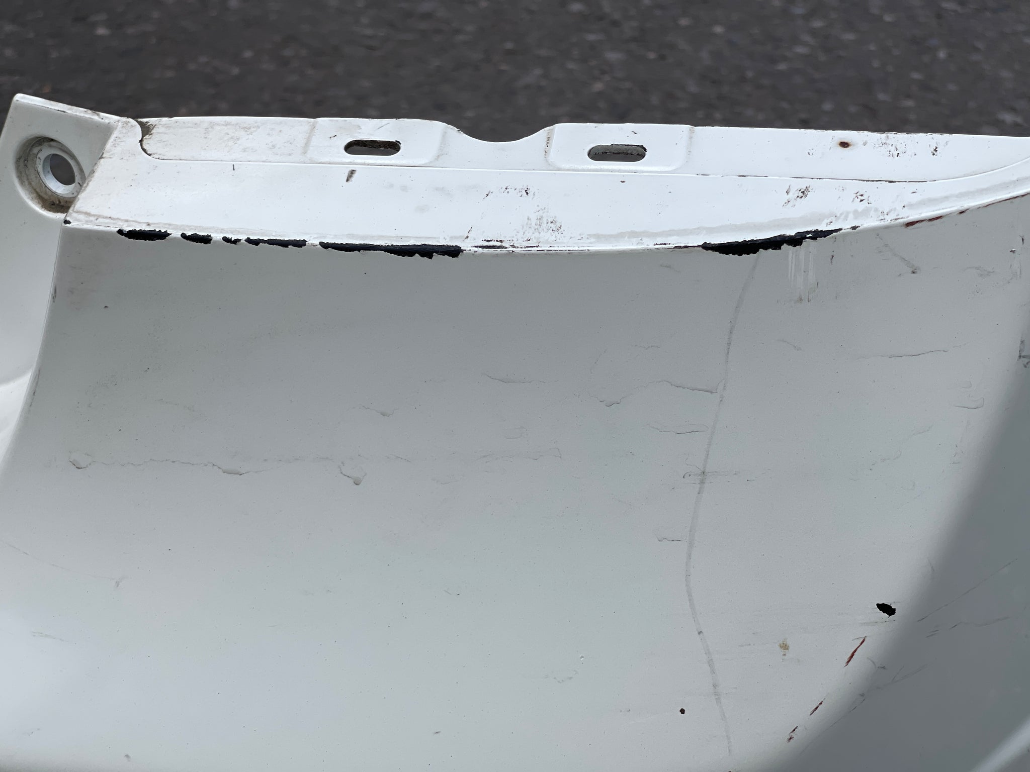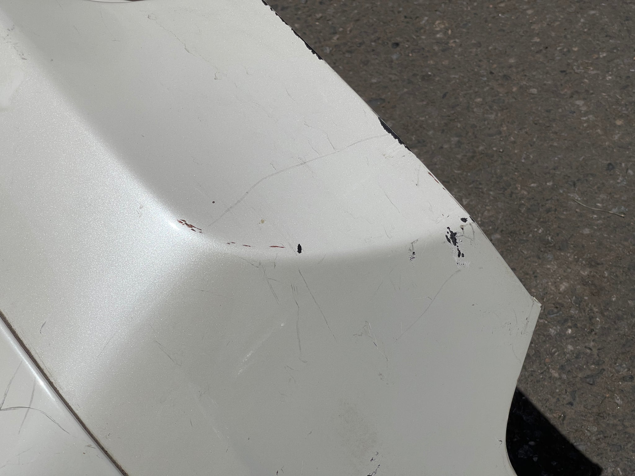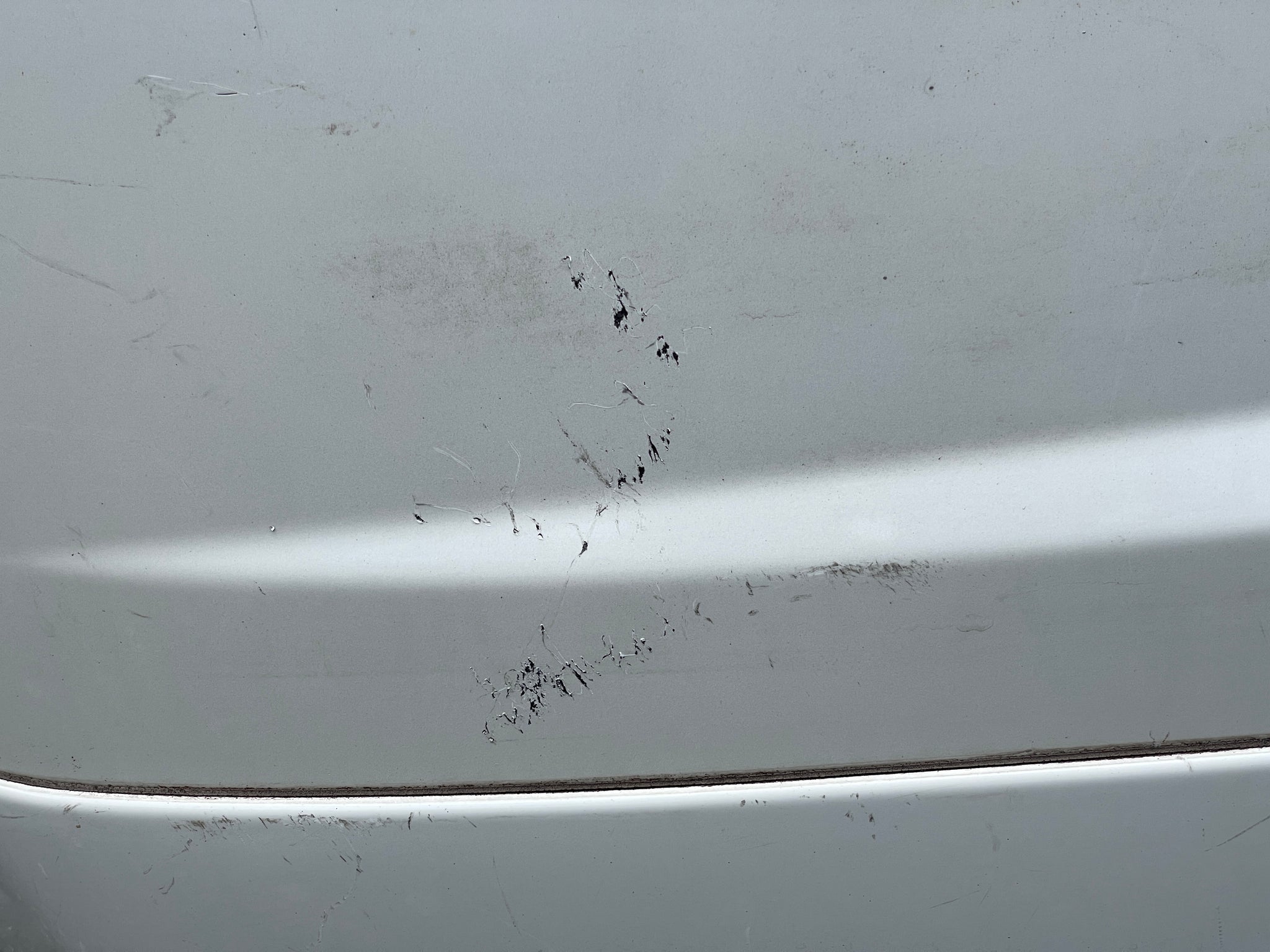 It has scratches and paint imperfections.