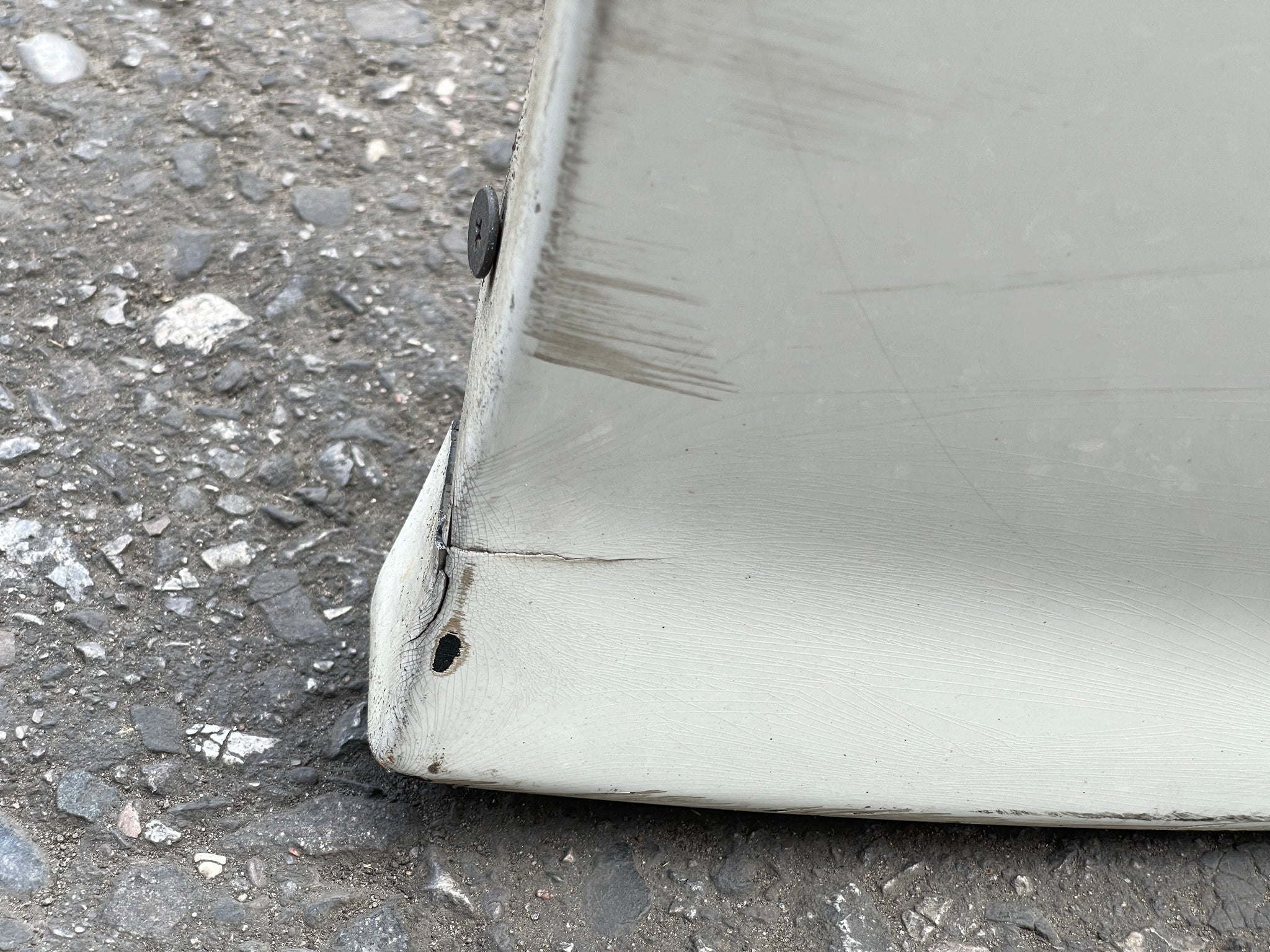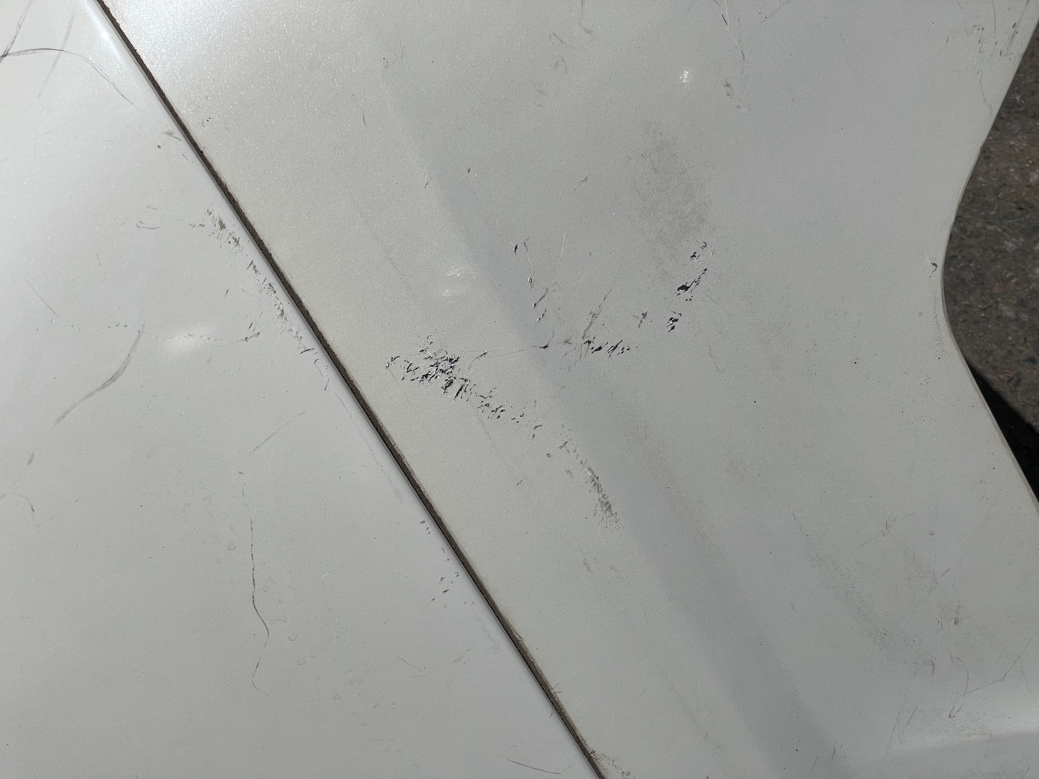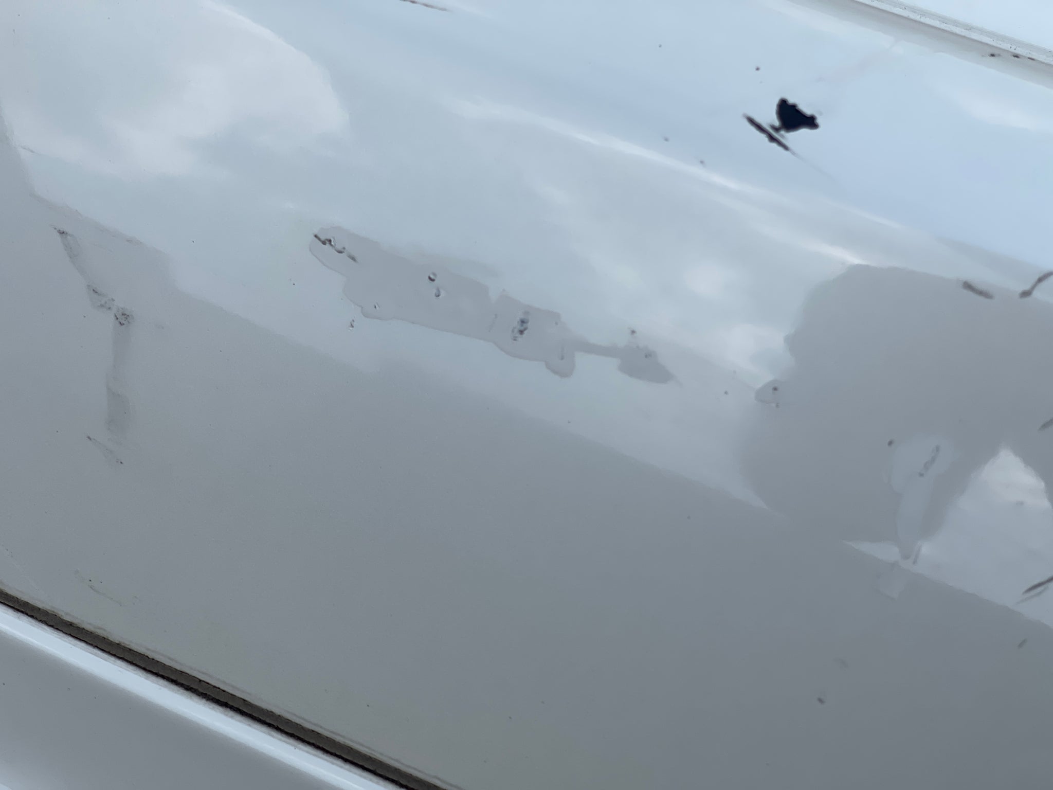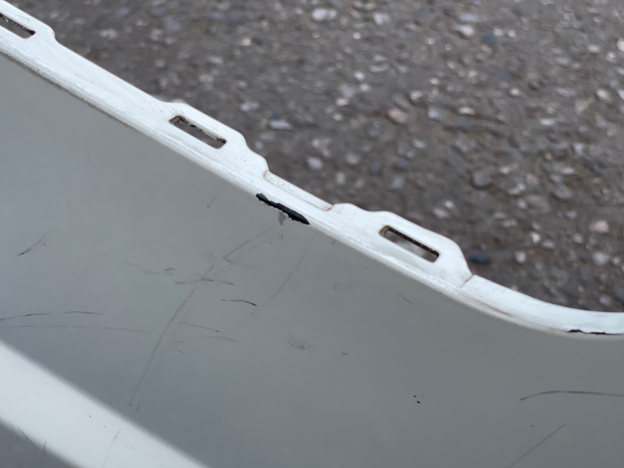 It has scratches and paint imperfections.