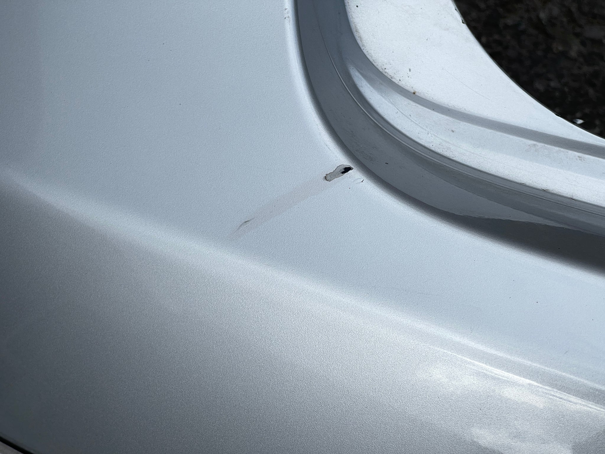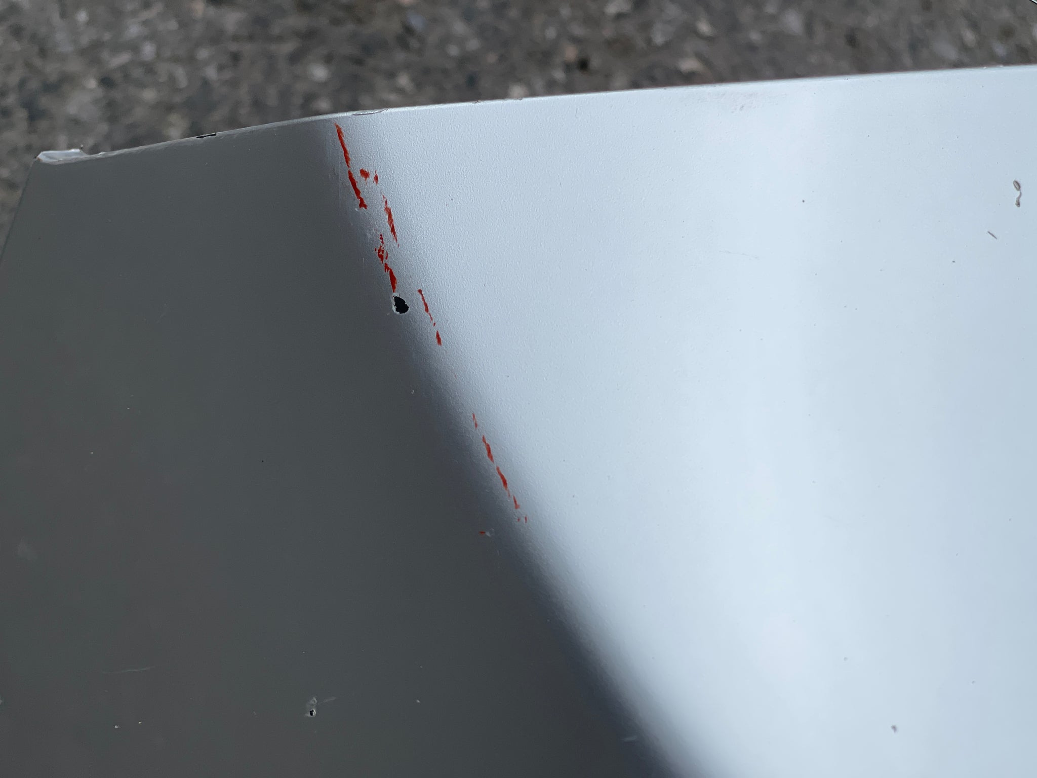 It has scratches and paint imperfections.