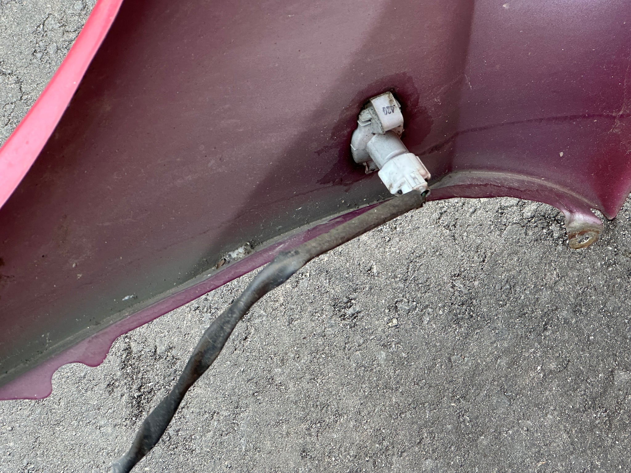 Bumper has a repair spot on it.