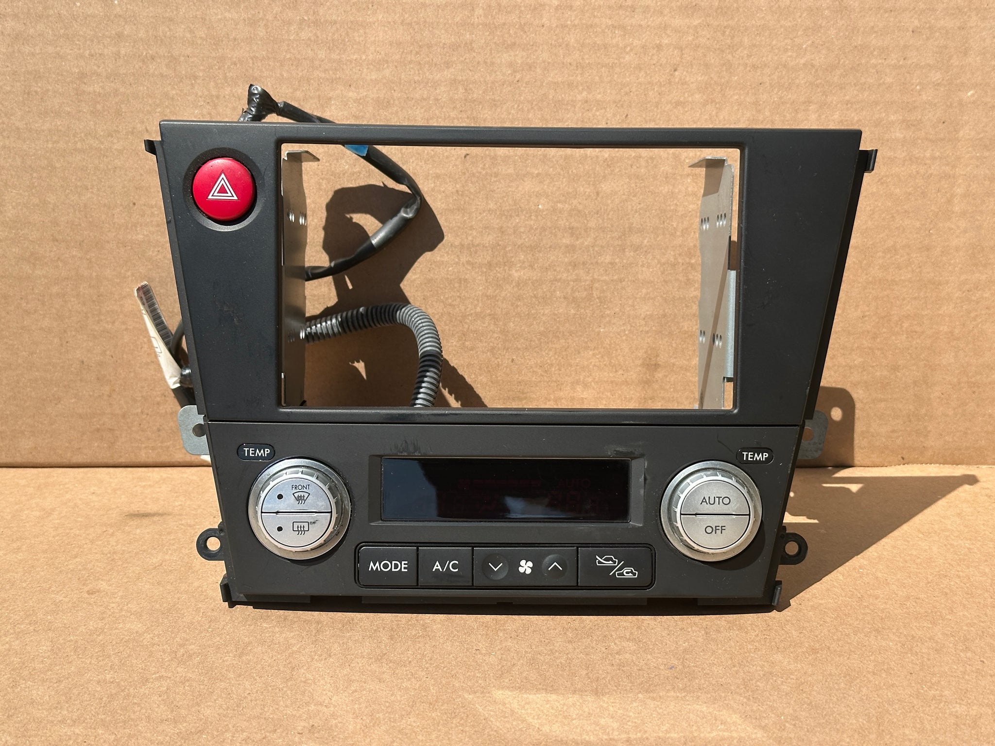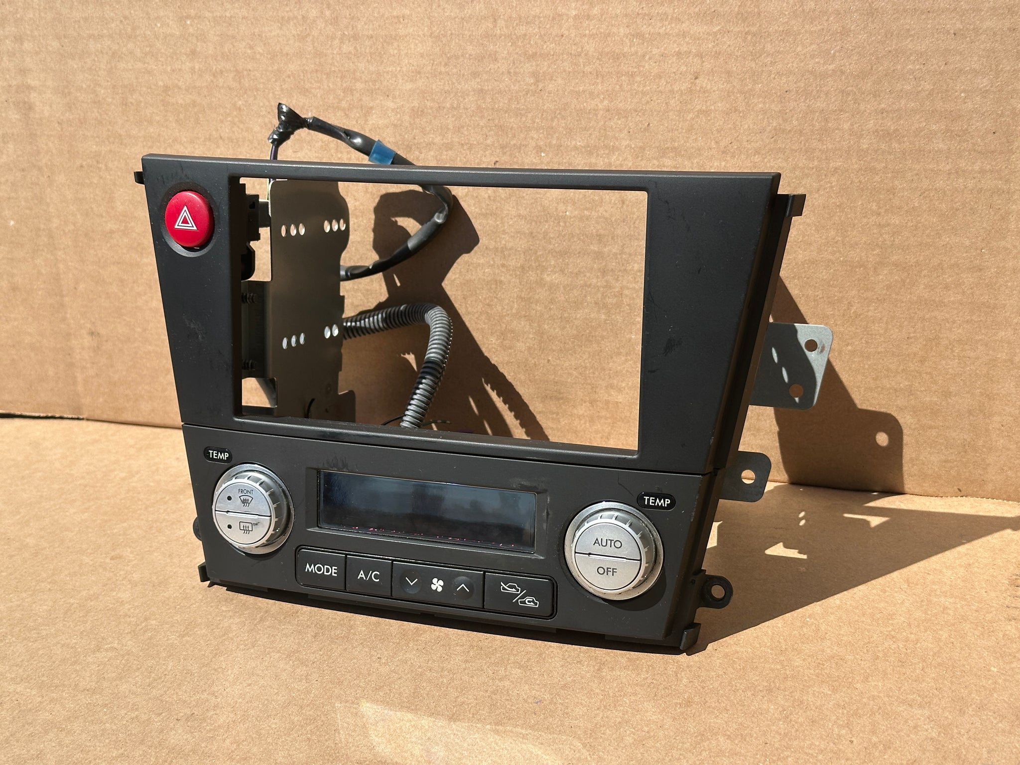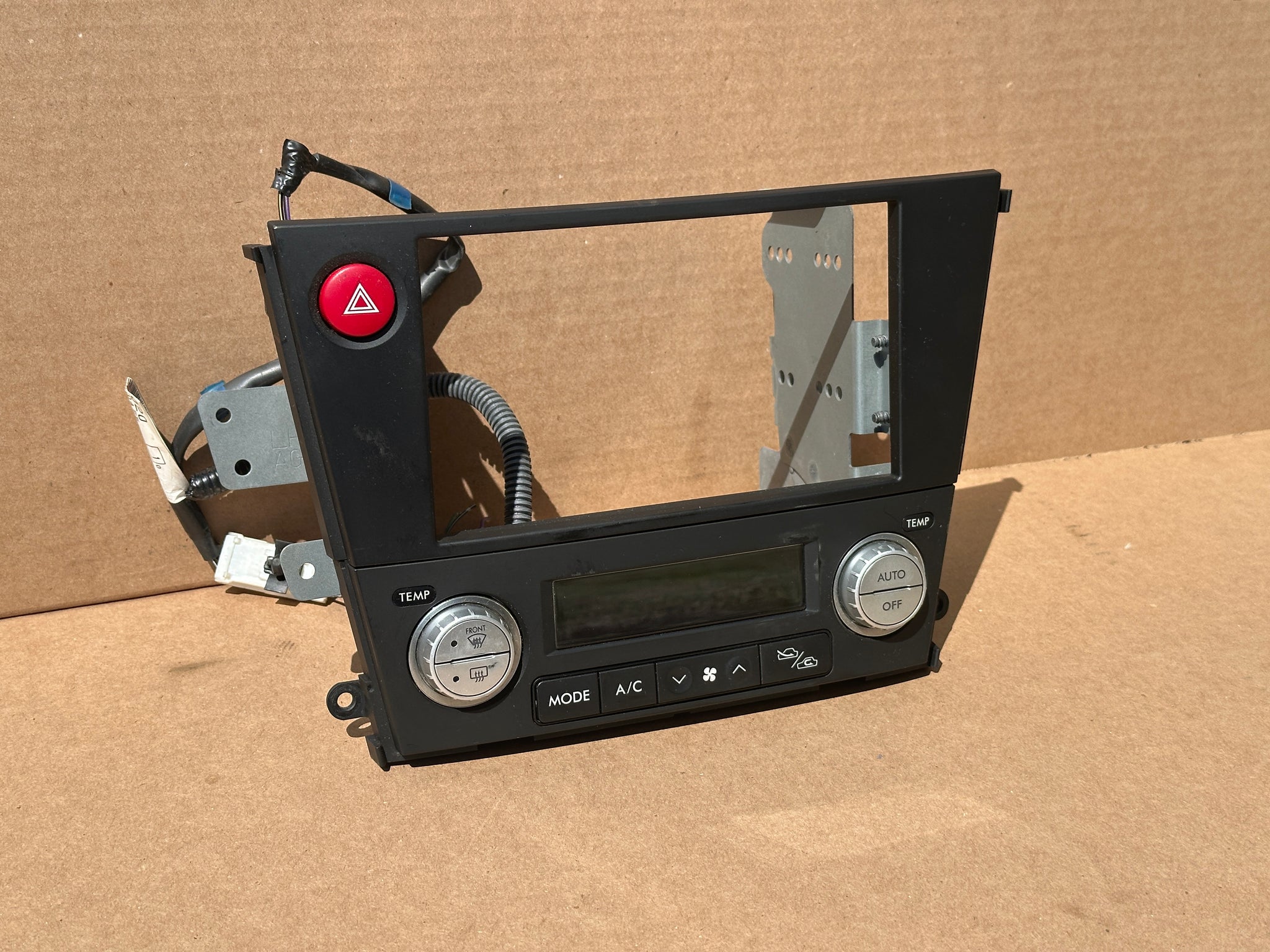 Upgrade your Subaru Legacy or Outback interior with this authentic JDM dual-DIN climate control bezel, complete with hazard switch and stylish silver finish. This bezel allows you to cleanly mount an aftermarket double-DIN head unit while integrating factory-style climate controls — a must-have for any clean JDM interior swap.