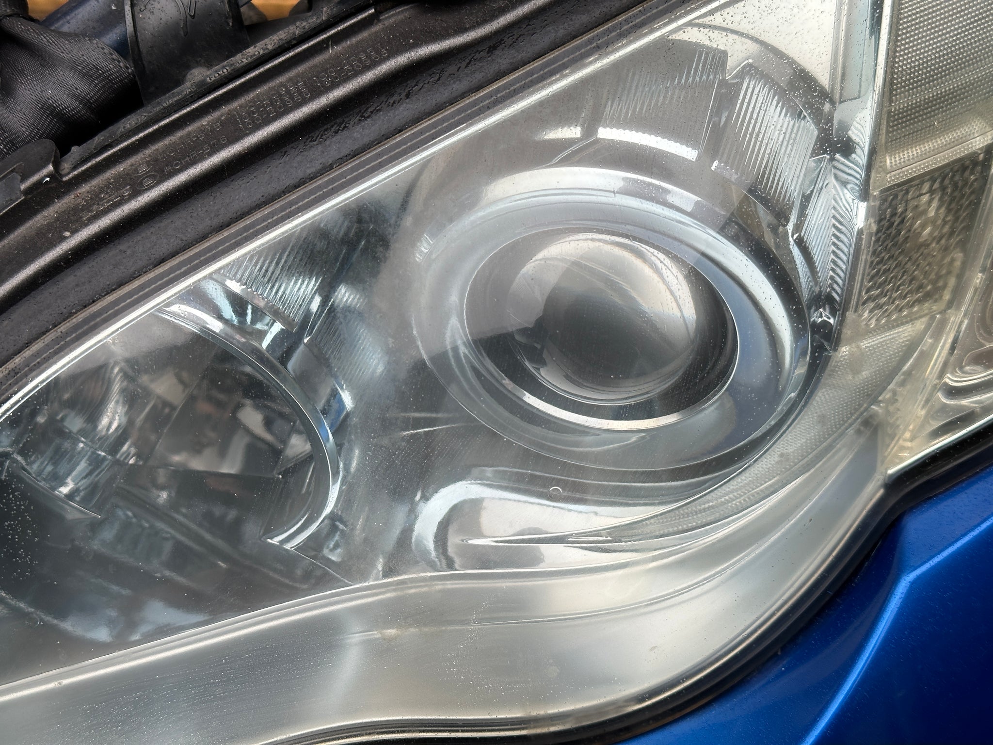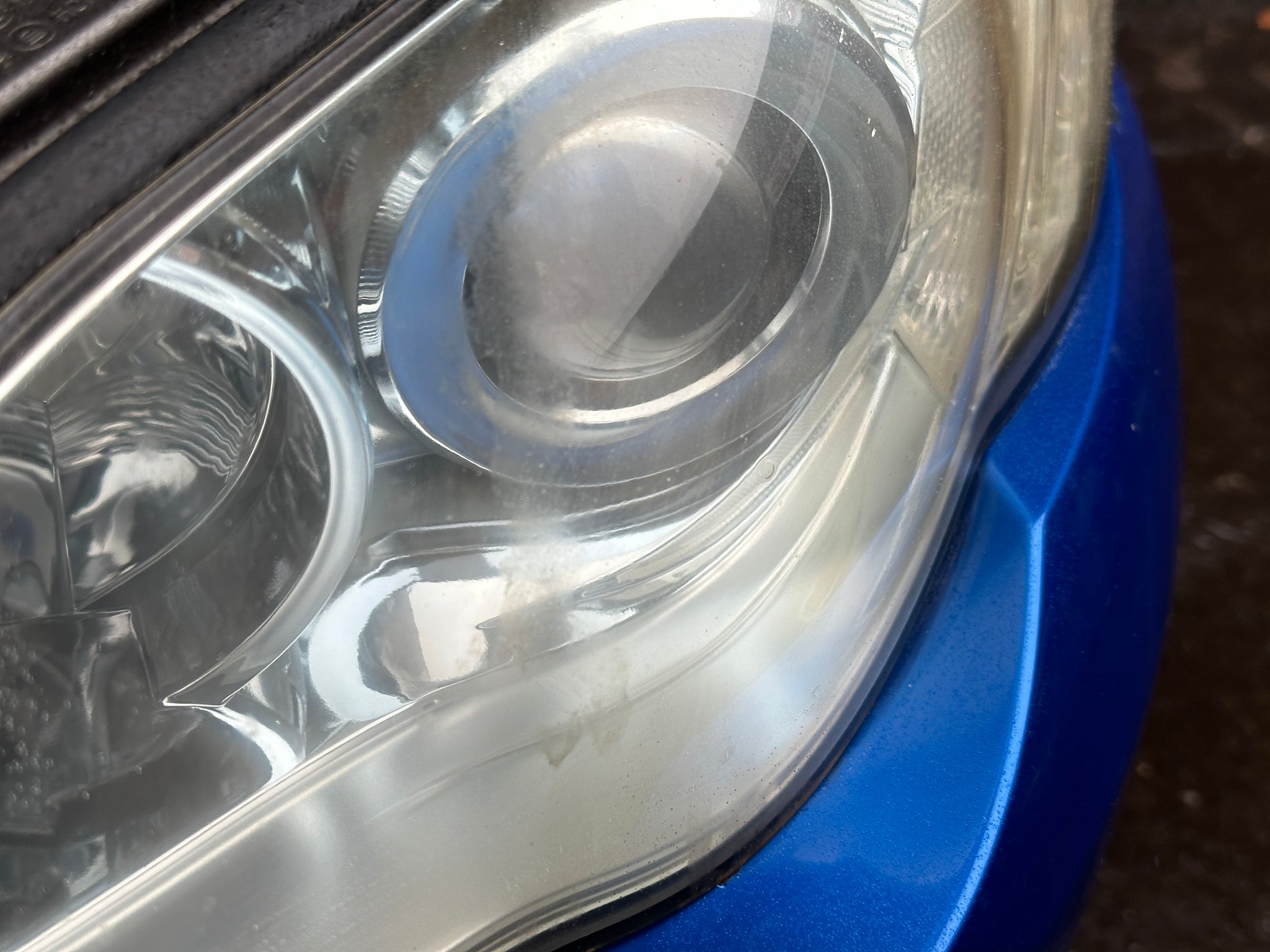 Driver side headlight has a "stain/fade"